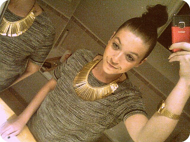 Last night I went out for drinks with my boyfriend and his friend Jules. I went for a very tight bun, with some sunkisses nude make up. I did not take a pic of my full outfit. I'll do that soon! It was Blake lively inspired. I love her so much. She is a natural beauty, an inspiration. I wore a top from H&M trend, my leather shorts from H&M divided, my golden necklace from Bazar Bizar in Antwerp ( my secret bohemian style shop ), Casio golden watch, and black tights. I finished my look off with a black short blazer, and a grey scarf.